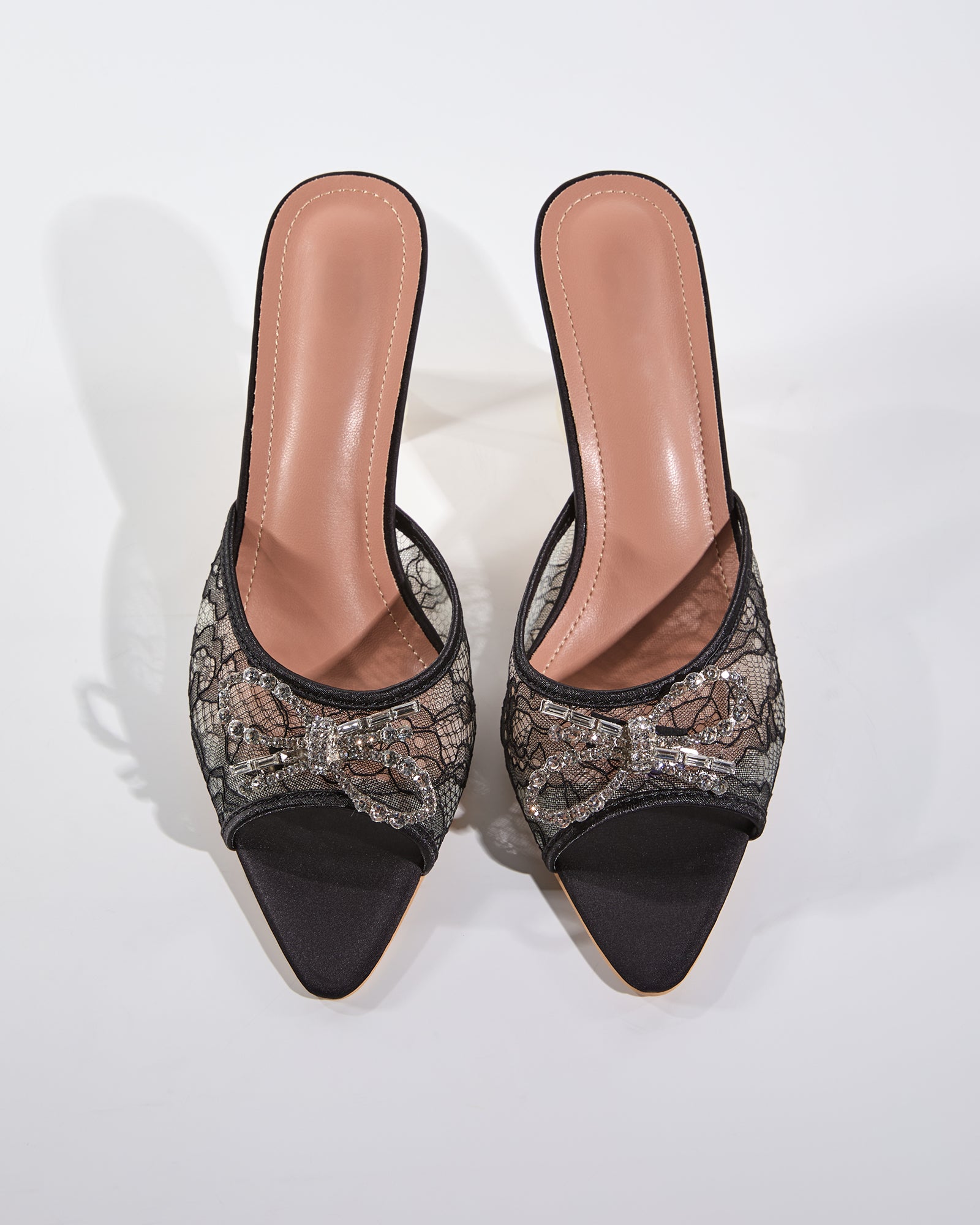 Rina Diamond Bow Lace Flared Heels In Black